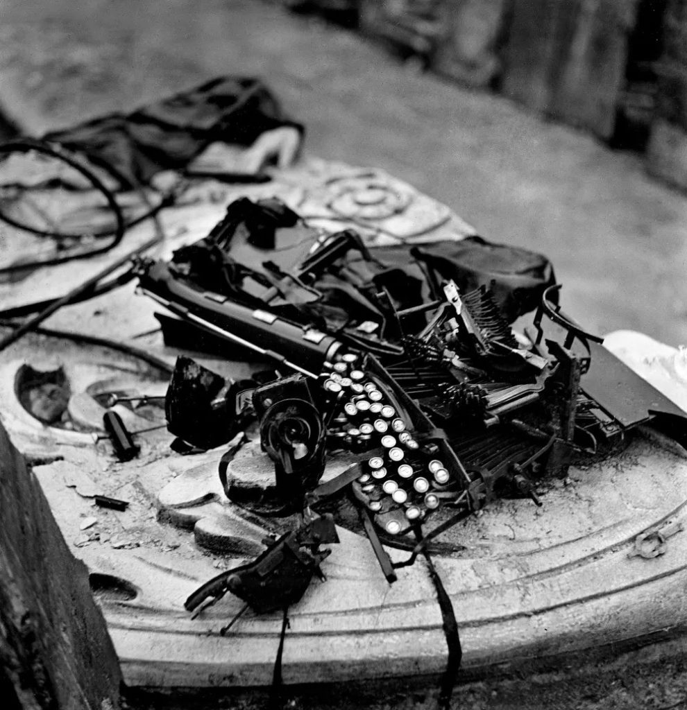 22 December 2025 (Madrid, Spain) – Miller, who delighted in word play, turns this shattered typewriter into a pun on the brand name. The image draws attention to the sculptural qualities of the broken machine. It offers an abstract representation of the war’s destructive energy. A number of years ago I bought a special print of the photo from the museum/workshop her son set up to memorialize her work. She is a legend in so many worlds: the modeling world, the art world, the photography world and the journalism world. She is one of my inspirations.